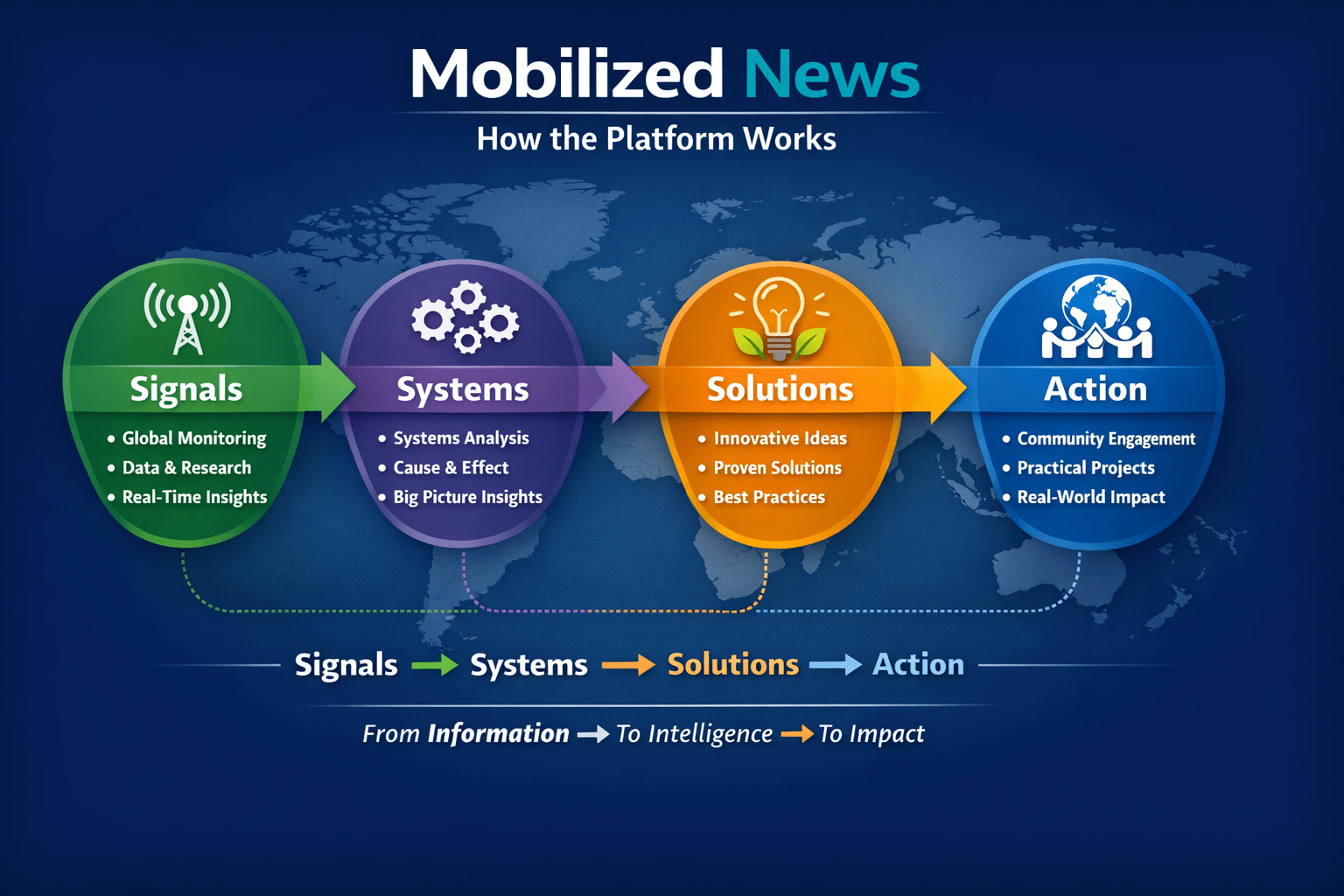 Mobilized News is a public intelligence platform that connects global signals → system dynamics → working solutions → practical action.