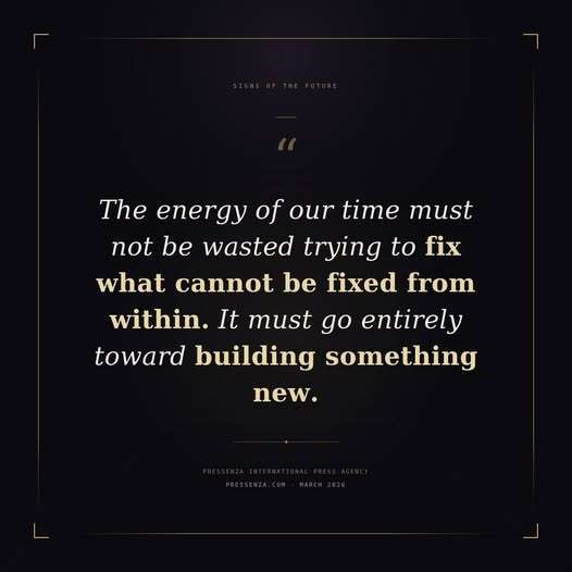 The energy of our time must not be wasted trying to fix what cannot be fixed from within. It must go entirely toward building something new.